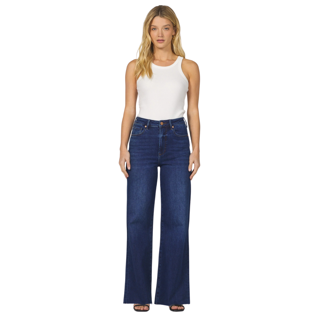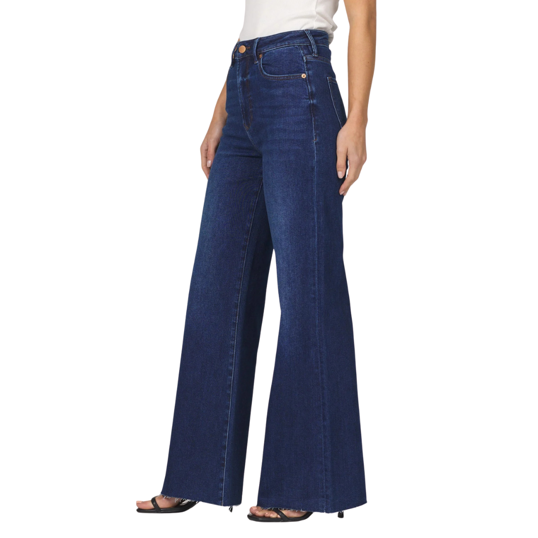 Sophistication with the Fiona wide leg jean in Dark Knight wash.
