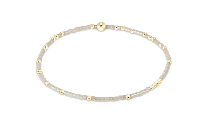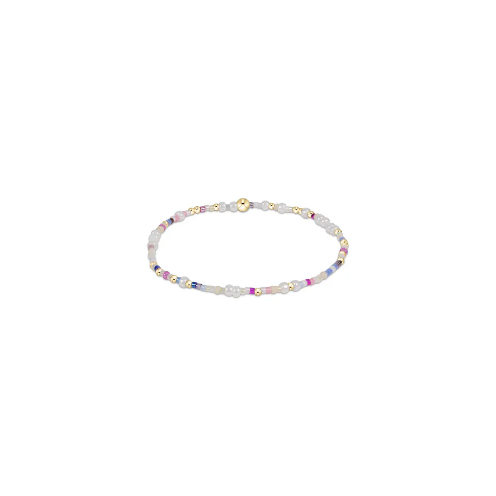Hand beaded on high performance elastic for a slight stretch to easily roll on and off your wrist