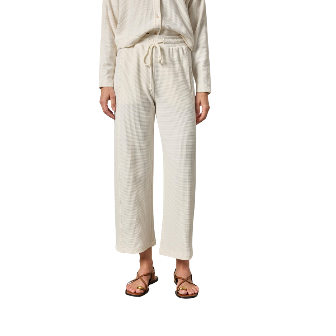 Our Textured Waffle Side Panel Pant combines ease with a flattering fit. With an elastic waistband and twill tape drawcord, this style is designed for all-day comfort. Front pockets are sewn into the side panel for a clean, streamlined look. The straight-leg silhouette has a slightly fuller opening, making this the perfect casual pant to pair with the coordinating tank or your favorite tee.