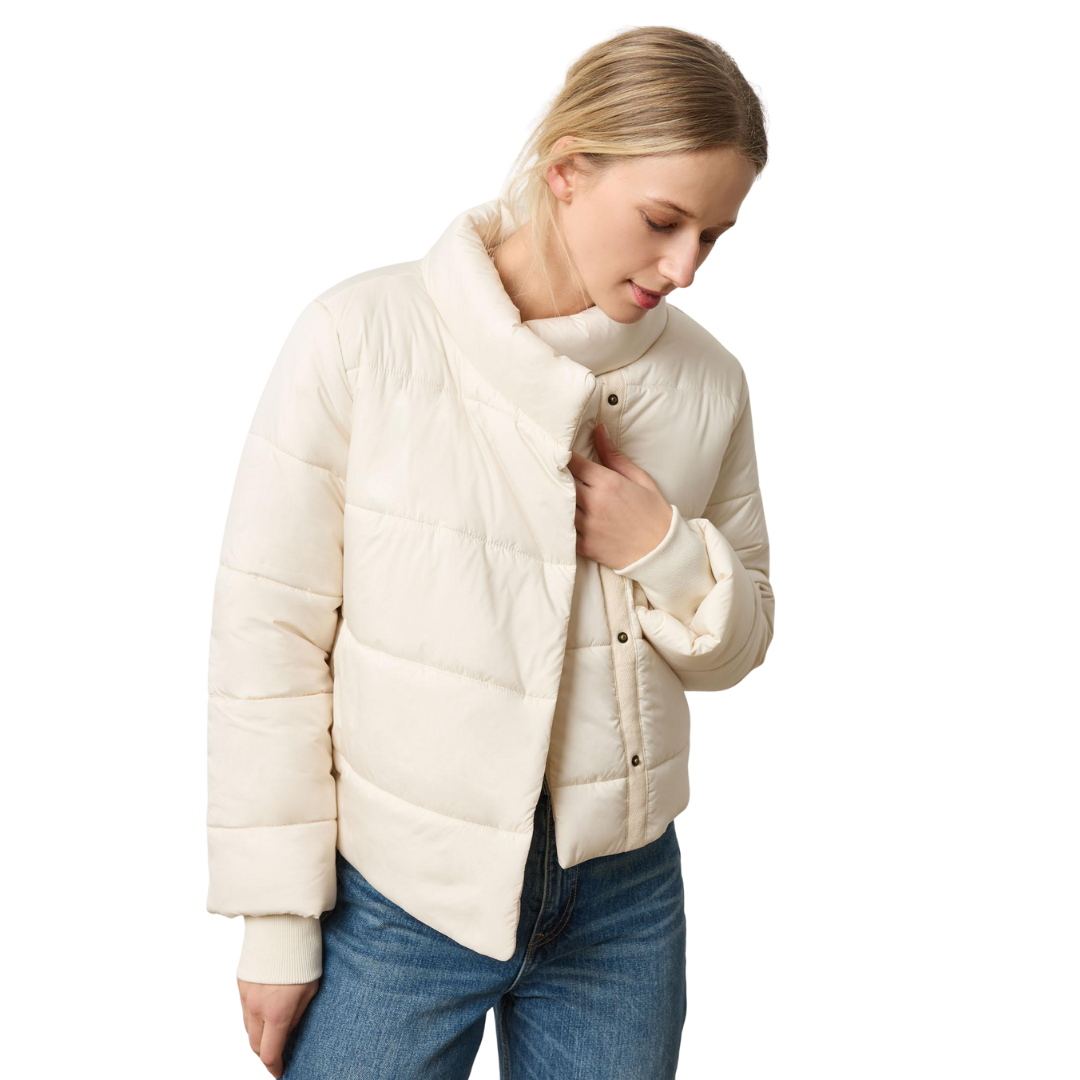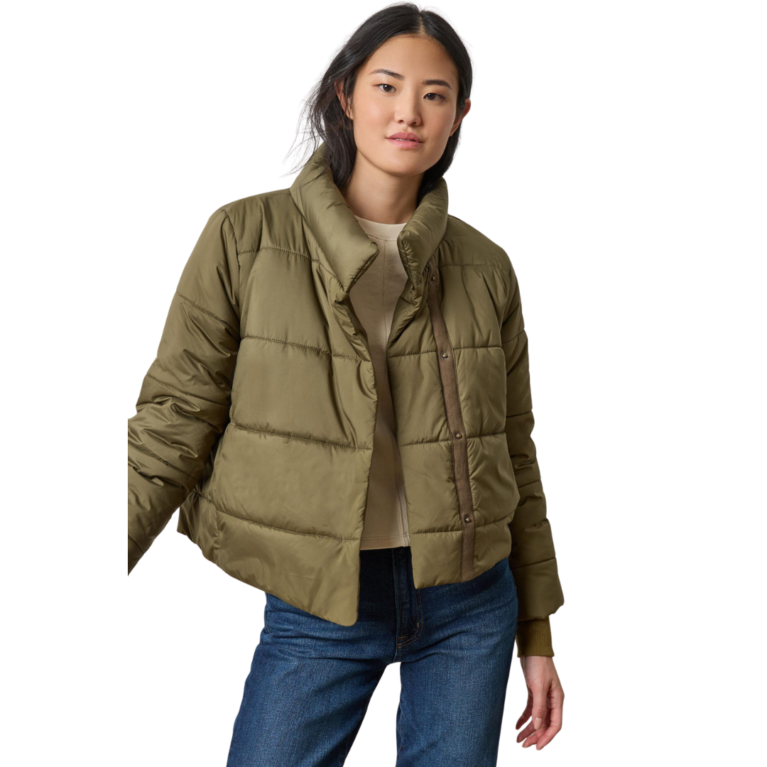 The Knit Cuff Jacket is a chic update to a simple jacket, designed with a slight asymmetric cut, poly-fill, and channel stitching for a modern feel. Tonal knit cuffs add texture and refined detail, while the high-hip length makes it an easy layering piece. Wear it snapped or open for versatile styling. Available in both color and neutral options, this is the perfect new addition to your fall wardrobe.