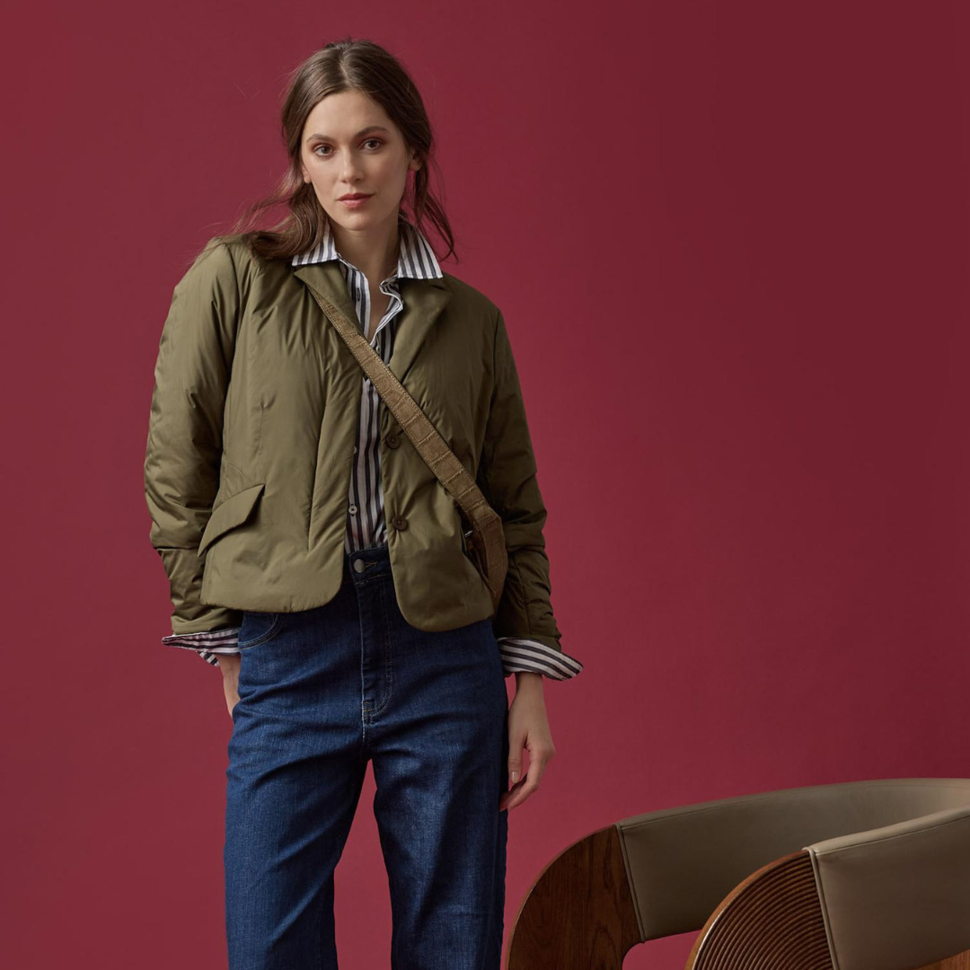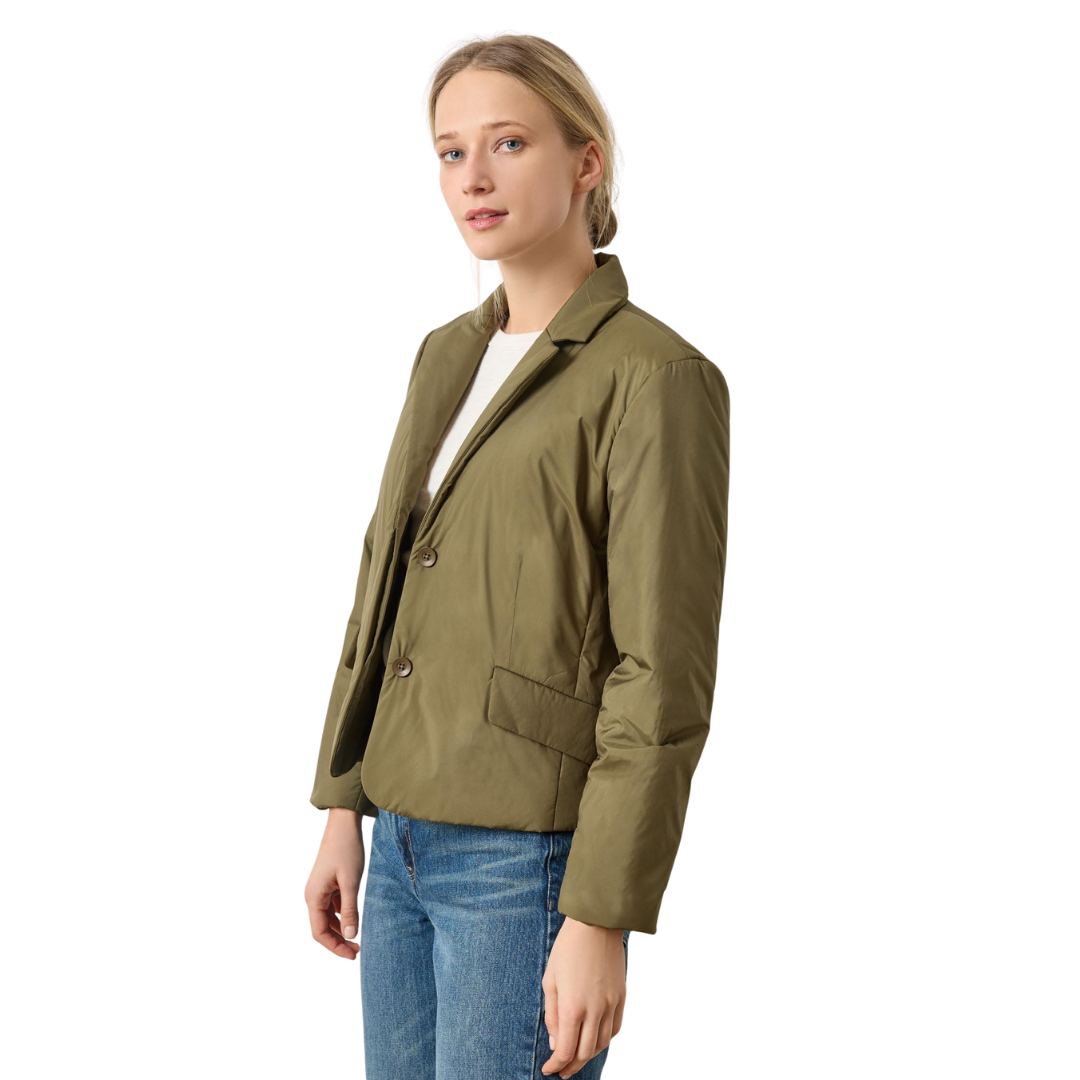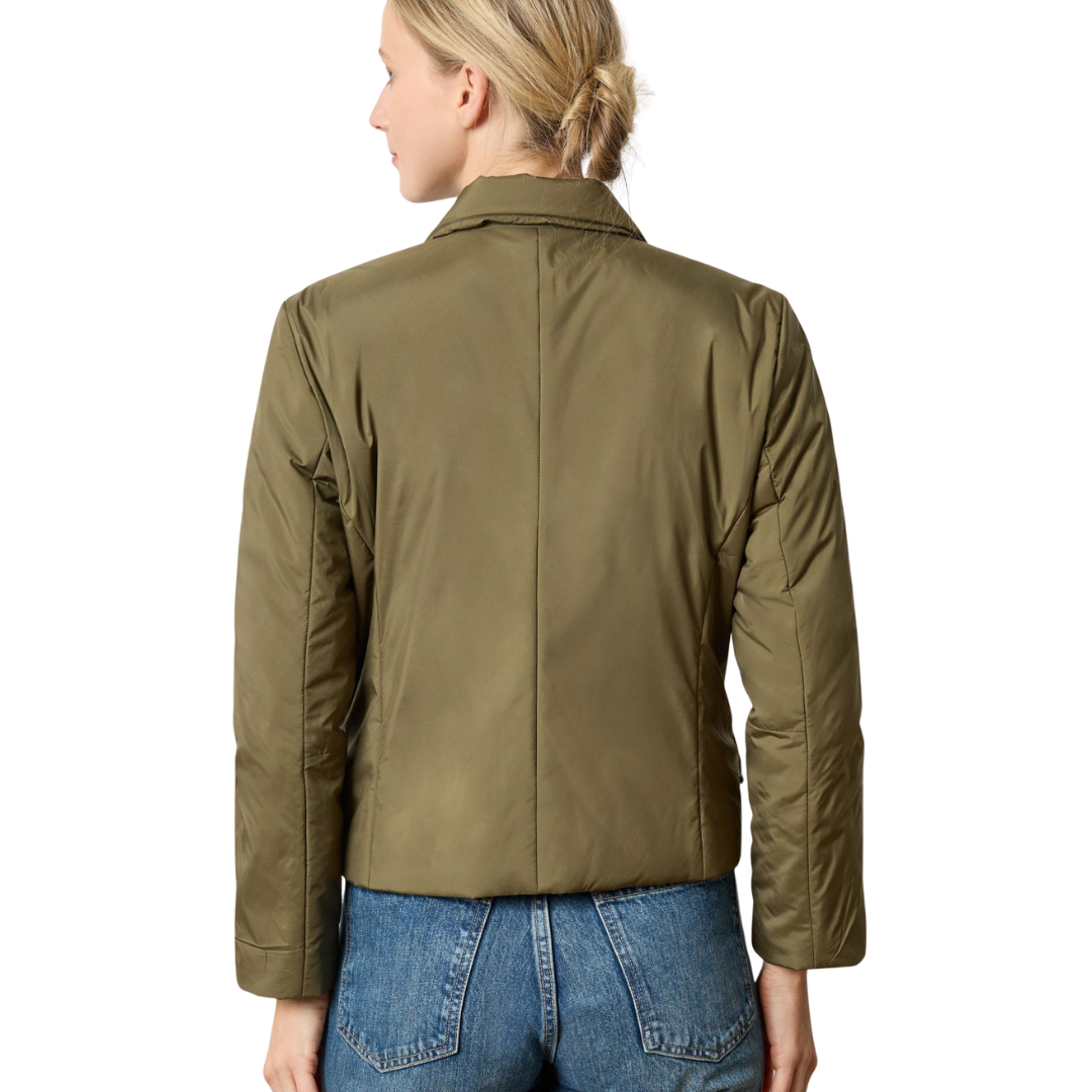 The Padded Blazer is a modern take on a classic silhouette. Made of nylon with a light fill, it's the perfect layer as we transition into cooler temperatures. Designed with smaller proportions and a high-hip length, this style feels both polished and contemporary. A hidden button closure, darts, and angled welt pockets add refined detail, making it a chic yet effortless go-to for layering all season long.