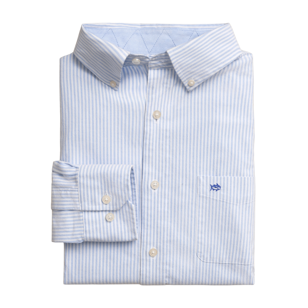 The Harborview Charleston Oxford Stripe Sport Shirt features a lightweight oxford feel and a refined coastal stripe that goes from dockside to downtown. Comfortable and versatile, it offers an easy, polished look suited for everyday Southern style.