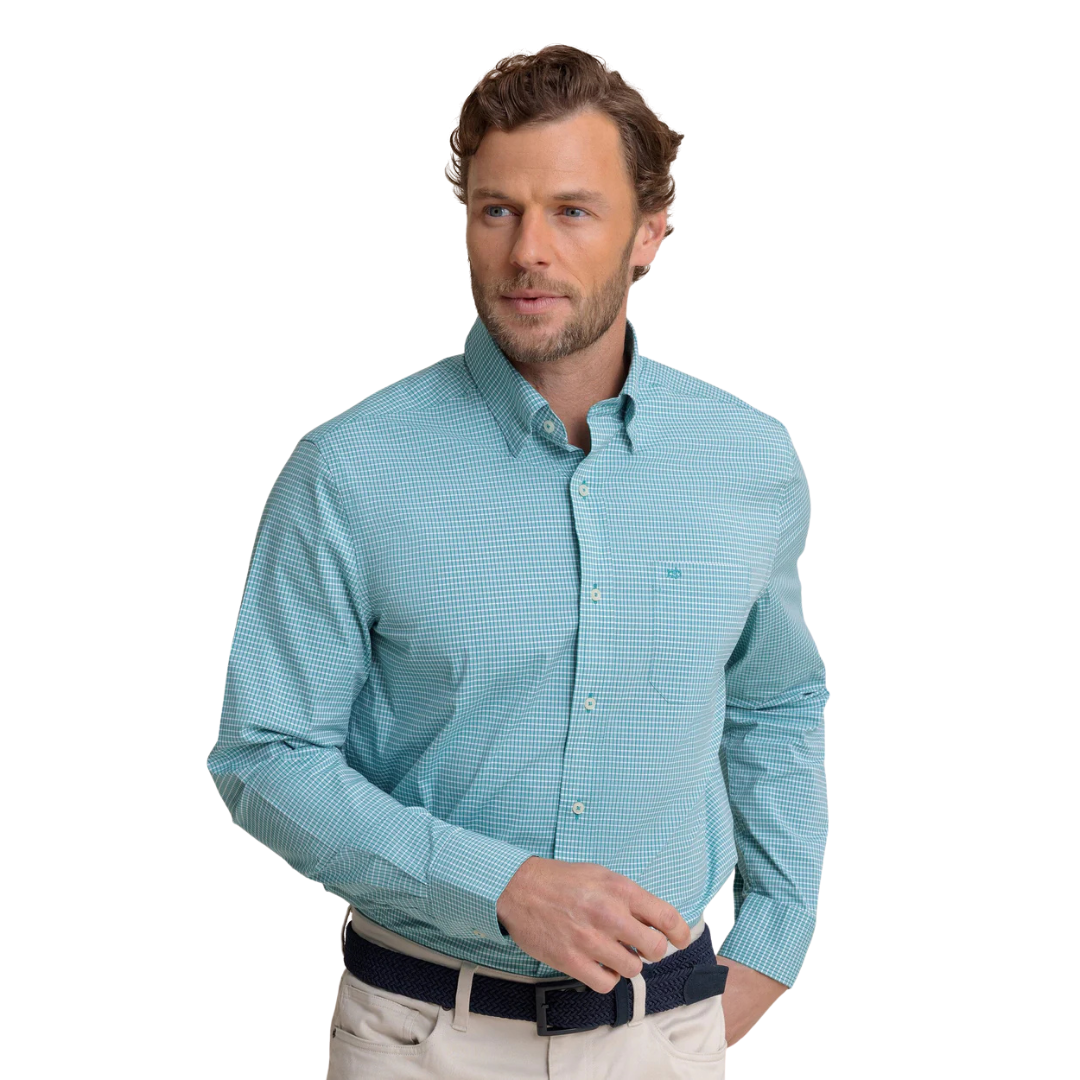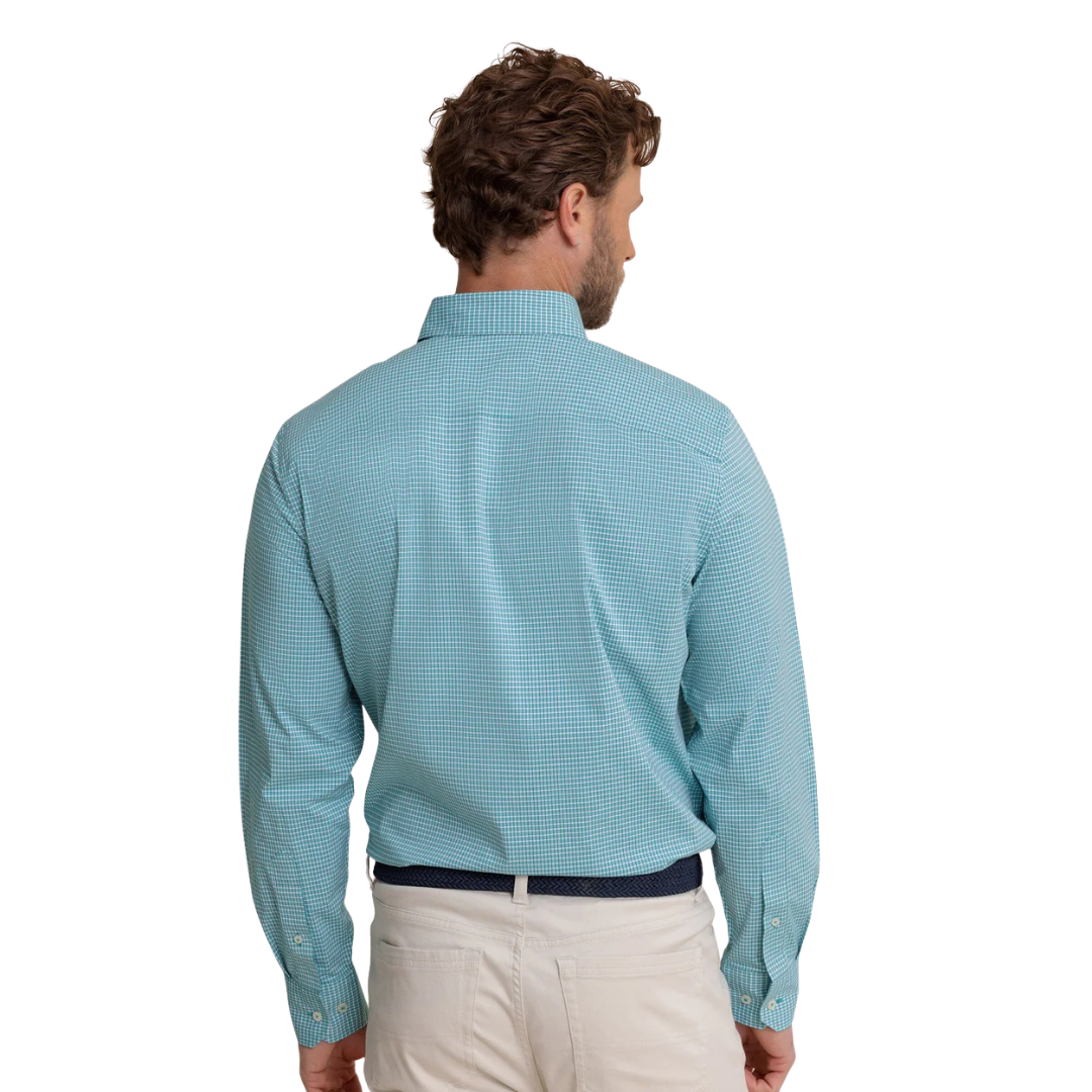 Lightweight, quick-drying, and made to keep you cool, the Crofton Plaid Charleston Long Sleeve Sport Shirt blends performance with classic Southern style. Crafted from wicking fabric with built-in cooling technology, it’s designed to move effortlessly from dockside afternoons to dinner downtown. A refined plaid pattern, hidden button-down collar, and adjustable cuffs create a polished look that’s comfortable in every season.