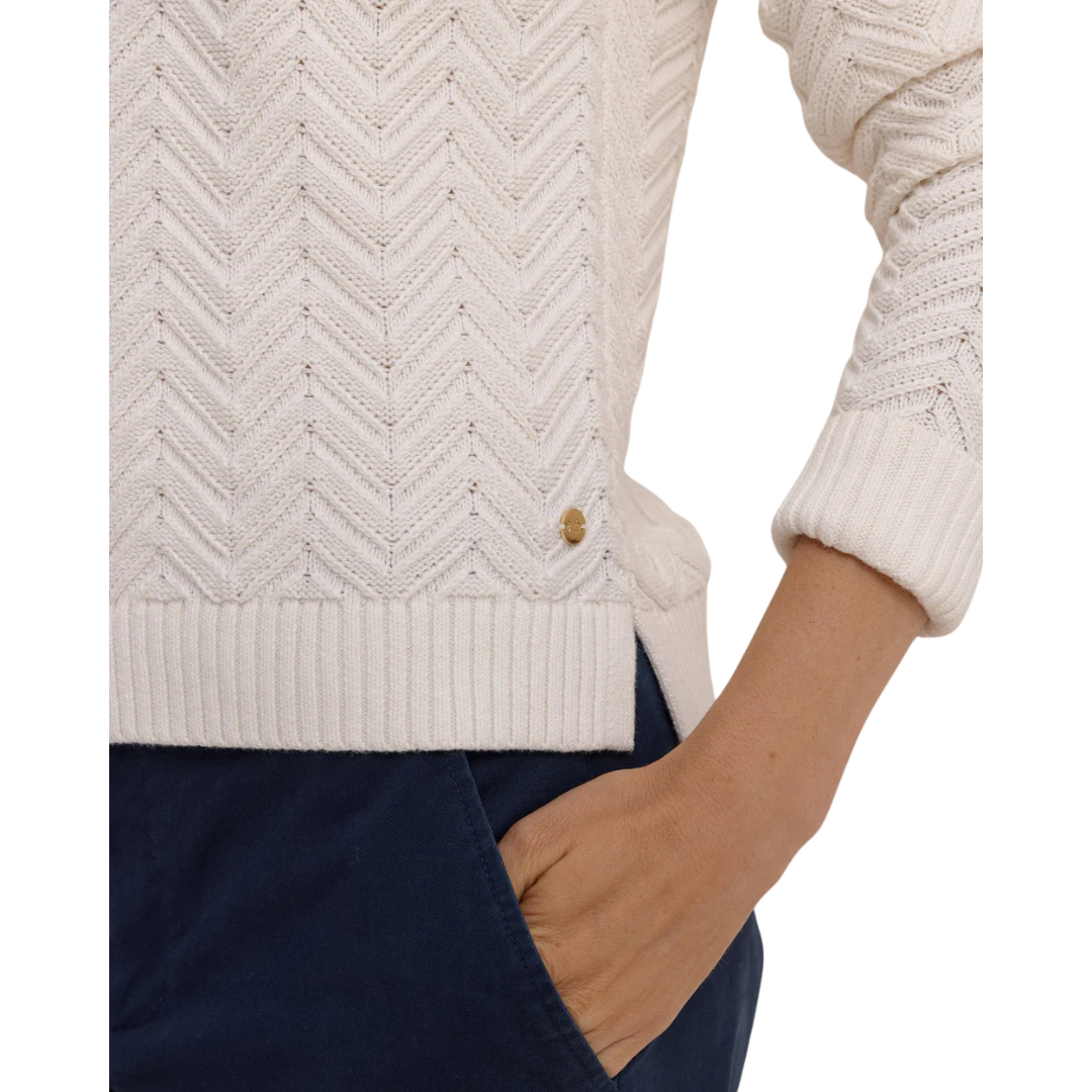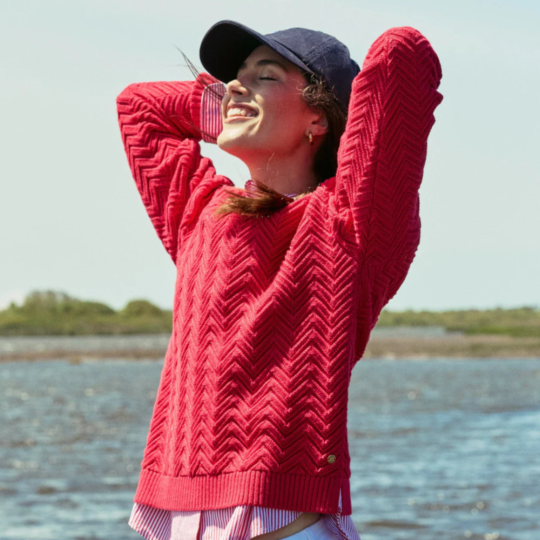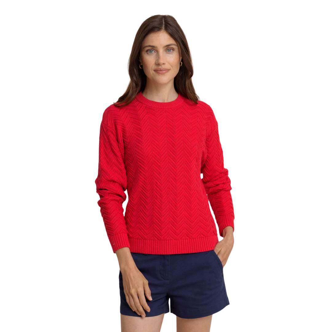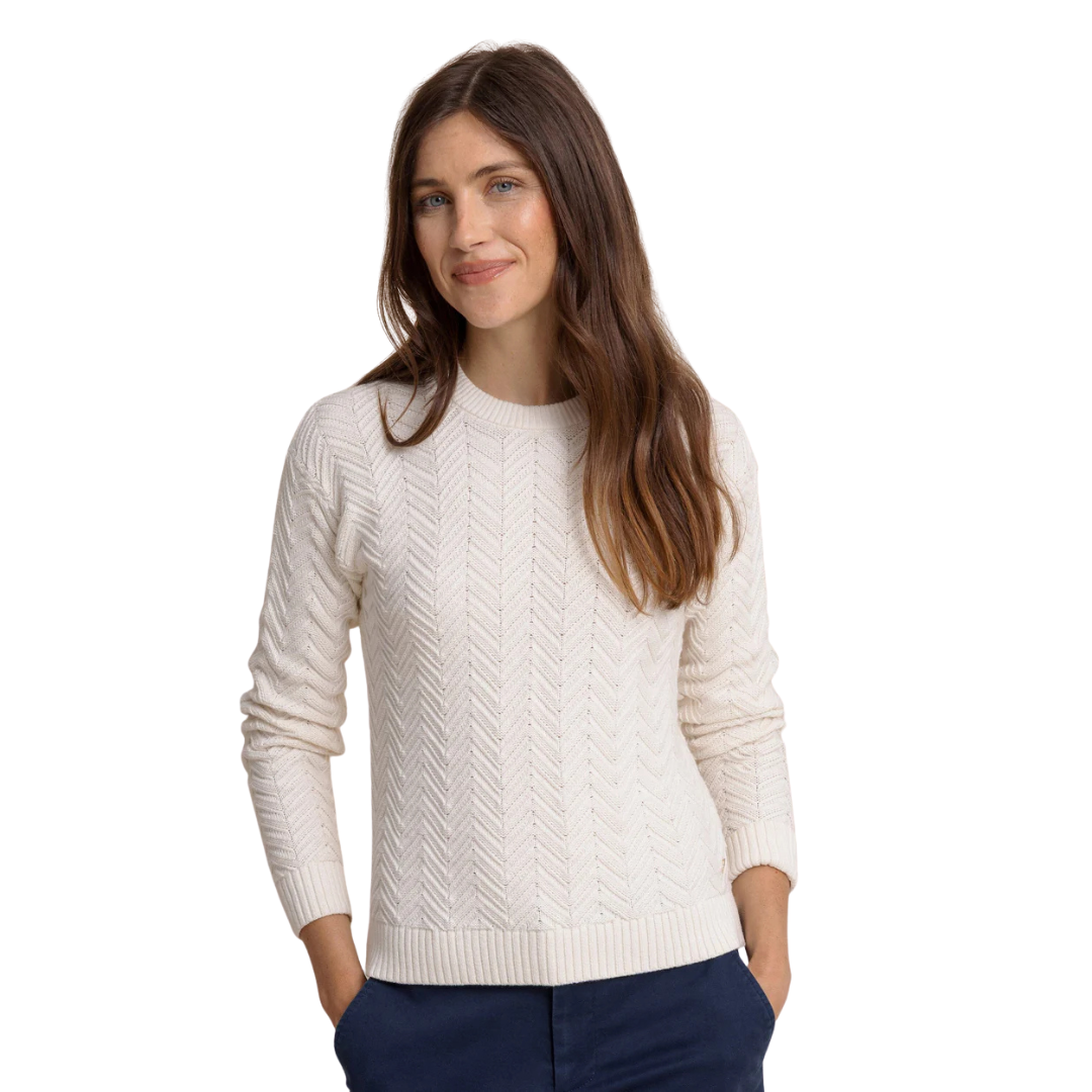 The Saige Sweater blends refined detail for a look that feels as effortless as it is polished. Designed with a drop shoulder and crew neck silhouette, this women's sweater features a subtle chevron stitch that adds texture and dimension. Soft, versatile, and timeless — this sweater offers a classic fit you’ll reach for season after season.