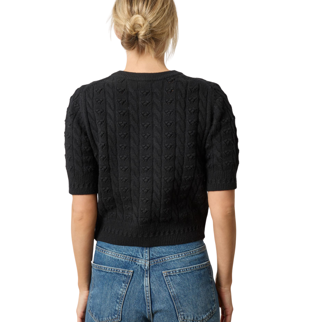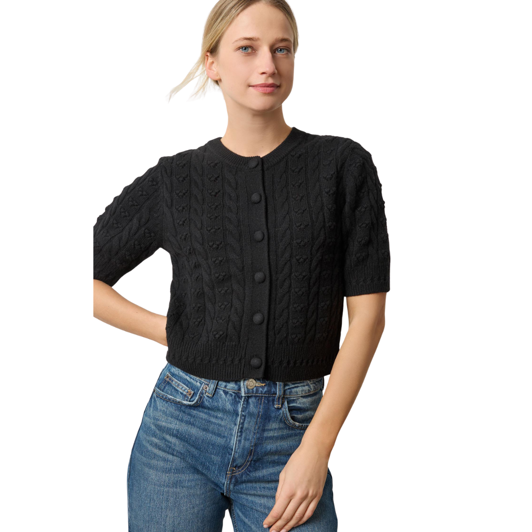 The Short Sleeve Cardigan Sweater in our New Luxe Cashmere Blend is soft, cozy, and eco-friendly. This luxurious yarn holds stitches beautifully, highlighting the intricate stitch details and delicate self-covered buttons. Worn alone or layered over a crisp Poplin button-down, it pairs perfectly with our Twill bottoms or your favorite denim for an elevated yet easy look.