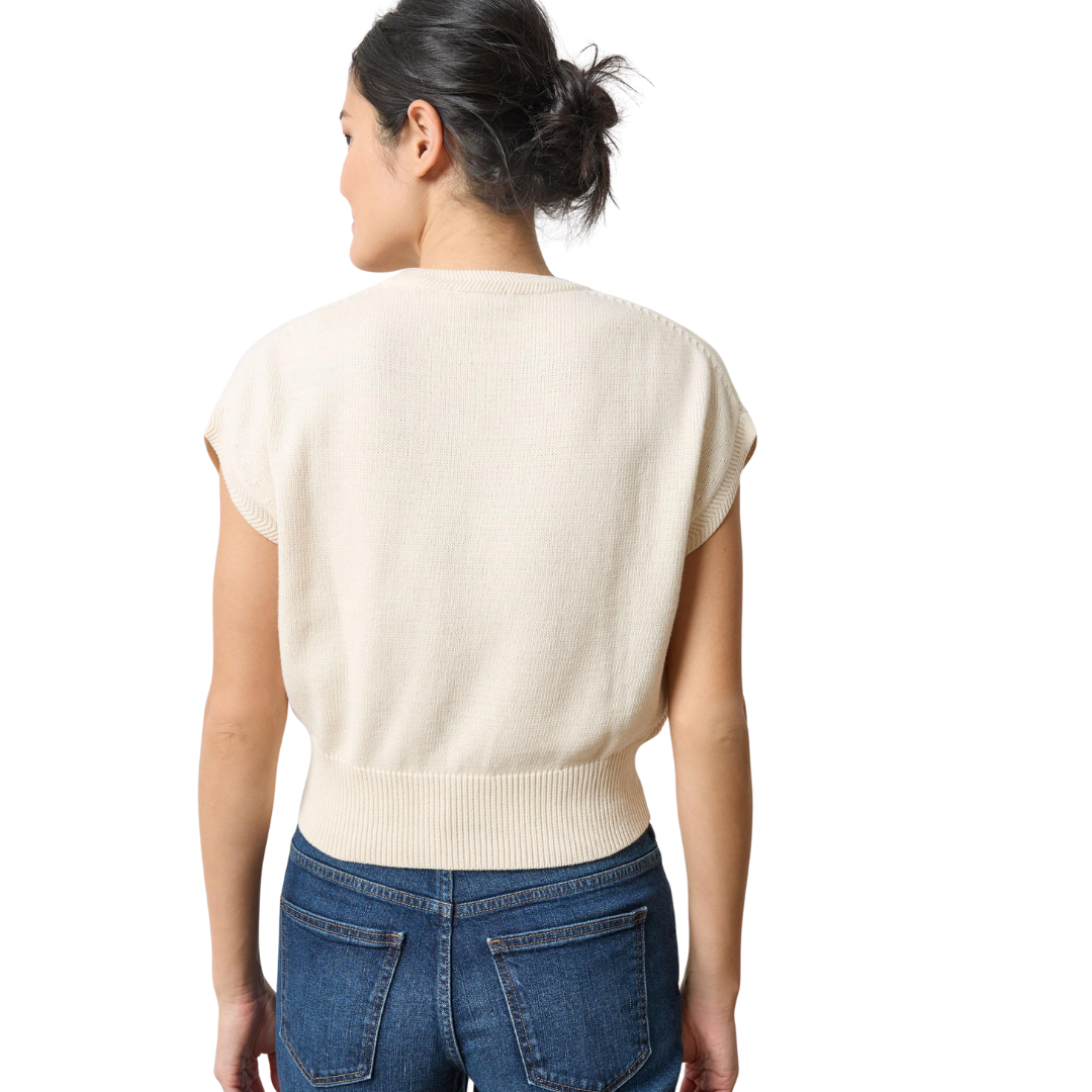 The Wedge Sweater is a fresh take on one of our best-selling styles. This season, intricate stitch detailing along the neckline, side seams, and armholes adds subtle texture and interest. The slightly shorter length and gently drawn-in bottom opening make it the perfect pairing for skirts or mid-to-high-rise bottoms. Knit in our mid-weight eco-cotton blend yarn, perfect as temperatures begin to cool and just as ideal for early spring.